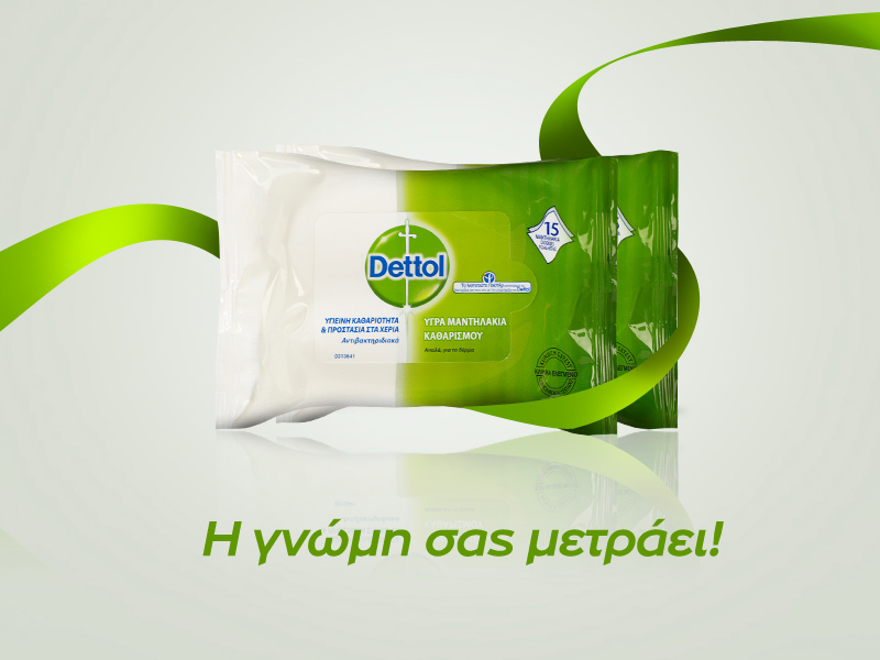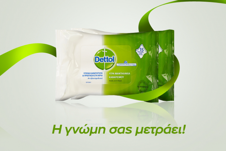 Η σελίδα Dettol Greece διοργανώνει διαγωνισμό και δίνει τη δυνατότητα σε 50 τυχερούς να κερδίσουν από 2 πακέτα υγρά μαντηλάκια Dettol.