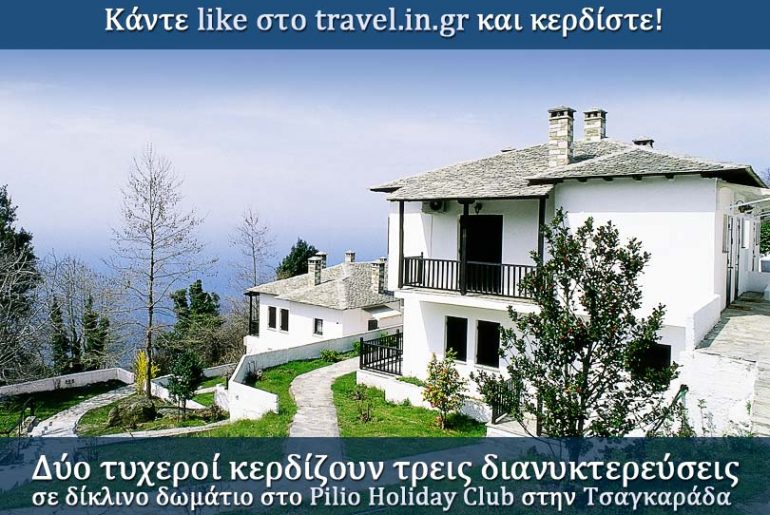 Οι Διακοπές, σε συνεργασία με το παραδοσιακό ξενοδοχείο Pilio Holiday Club, στην περιοχή της Τσαγκαράδας Πηλίου, προσφέρουν σε δύο τυχερούς επισκέπτες τους τετραήμερη διαμονή (τρεις διανυκτερεύσεις) σε δίκλινο δωμάτιο.