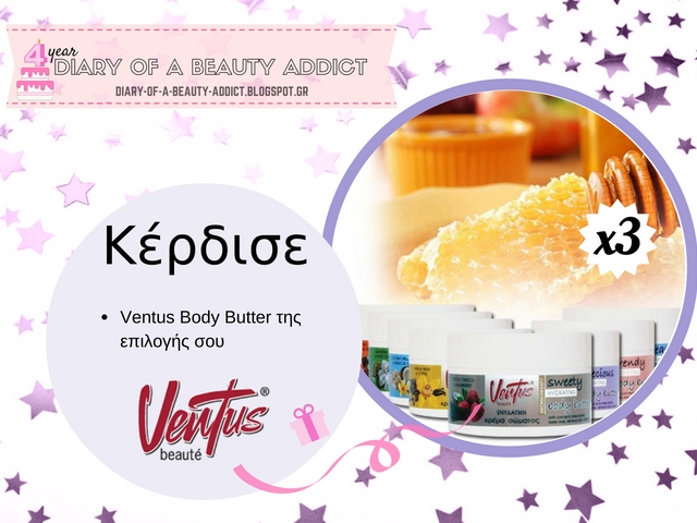 Διαγωνισμός Diary Of A Beauty Addict με δώρο 3 Ventus Body Butter