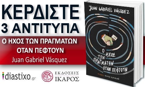 Το diastixo.gr σε συνεργασία με τις εκδόσεις Ίκαρος, προσφέρει στους αναγνώστες του 3 αντίτυπα από το μυθιστόρημα του Juan Gabriel Vásquez, Ο ΗΧΟΣ ΤΩΝ ΠΡΑΓΜΑΤΩΝ ΟΤΑΝ ΠΕΦΤΟΥΝ.