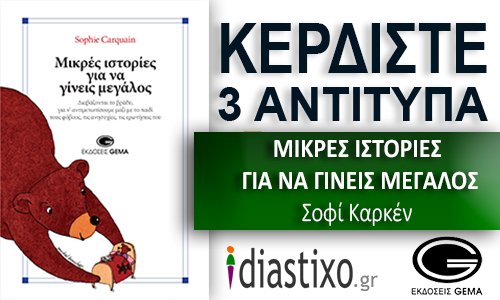 Το diastixo.gr σε συνεργασία με τις εκδόσεις Gema, προσφέρει στους αναγνώστες του 3 αντίτυπα από το βιβλίο της Σοφί Καρκέν, ΜΙΚΡΕΣ ΙΣΤΟΡΙΕΣ ΓΙΑ ΝΑ ΓΙΝΕΙΣ ΜΕΓΑΛΟΣ.
