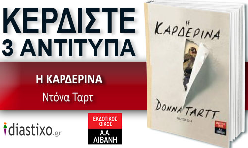 Το diastixo.gr διοργανώνει διαγωνισμό και σας δίνει τη δυνατότητα να κερδίσετε 3 αντίτυπα από το μυθιστόρημα της Ντόνα Ταρτ, Η ΚΑΡΔΕΡΙΝΑ!