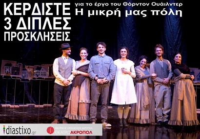 Το diastixo.gr, σε συνεργασία με το Θεατρικό Οργανισμό Ακροπόλ, προσφέρει στους αναγνώστες του 3 διπλές προσκλήσεις, για το έργο του Θόρντον Ουάιλντερ Η μικρή μας πόλη (για την παράσταση της Παρασκευής 22 Μαρτίου στις 18:00).