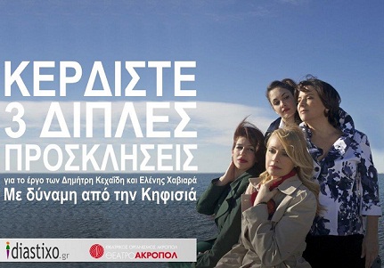 Το diastixo.gr, σε συνεργασία με το Θεατρικό Οργανισμό Ακροπόλ, προσφέρει στους αναγνώστες του 3 διπλές προσκλήσεις, για το έργο των Δημήτρη Κεχαΐδη και Ελένης Χαβιαρά Με δύναμη από την Κηφισιά (για την παράσταση της Πέμπτης 7 Μαρτίου στις 21:00).
