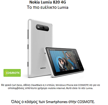 Το digitallife.gr διοργανώνει διαγωνισμό και σας δίνει τη δυνατότητα να κερδίσετε ένα 4G Smartphone Nokia Lumia 820 προσφορά της Cosmote.