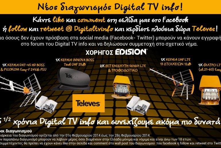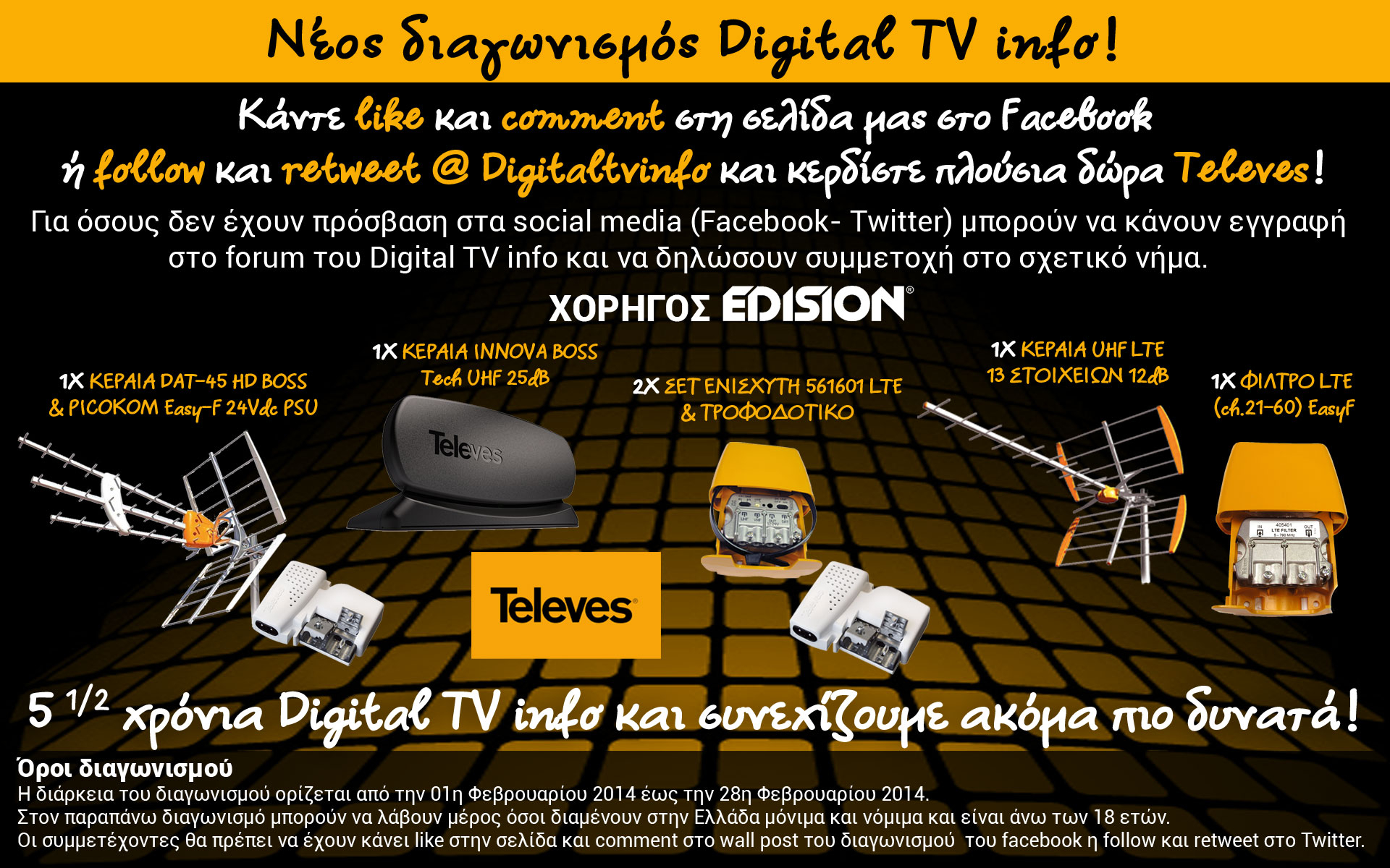 Το digitaltvinfo.gr διοργανώνει διαγωνισμό και σας δίνει τη δυνατότητα να κερδίσετε πλούσια δώρα Televes!