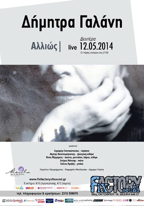 Η σελίδα Dimitra Galani διοργανώνει διαγωνισμό και σας δίνει τη δυνατότητα να κερδίσετε 5 μονές προσκλήσεις για την συναυλία της Δήμητρας Γαλάνη στο Fix Factory of Sound στις 12/05/2014.