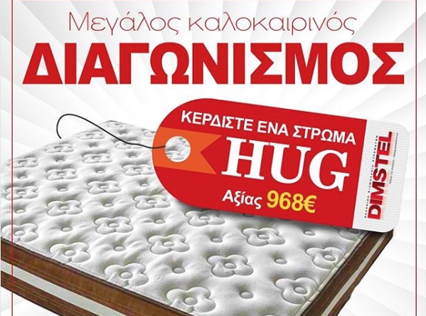Η Dimstel διοργανώνει διαγωνισμό και σας δίνει τη δυνατότητα να κερδίσετε ένα από τα top seller στρώματα, το Hug σε διαστάσεις 160×200, αξίας 968€!