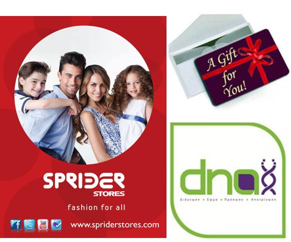 Τα DNA Ομορφιά διοργανώνουν διαγωνισμό στο facebook και σας δίνουν τη δυνατότητα να κερδίσετε 3 δωροεπιταγές των 100€ από τα Sprider Stores.