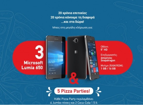 Ο 1ος νικητής θα κερδίζει ένα smartphone Microsoft Lumia 650