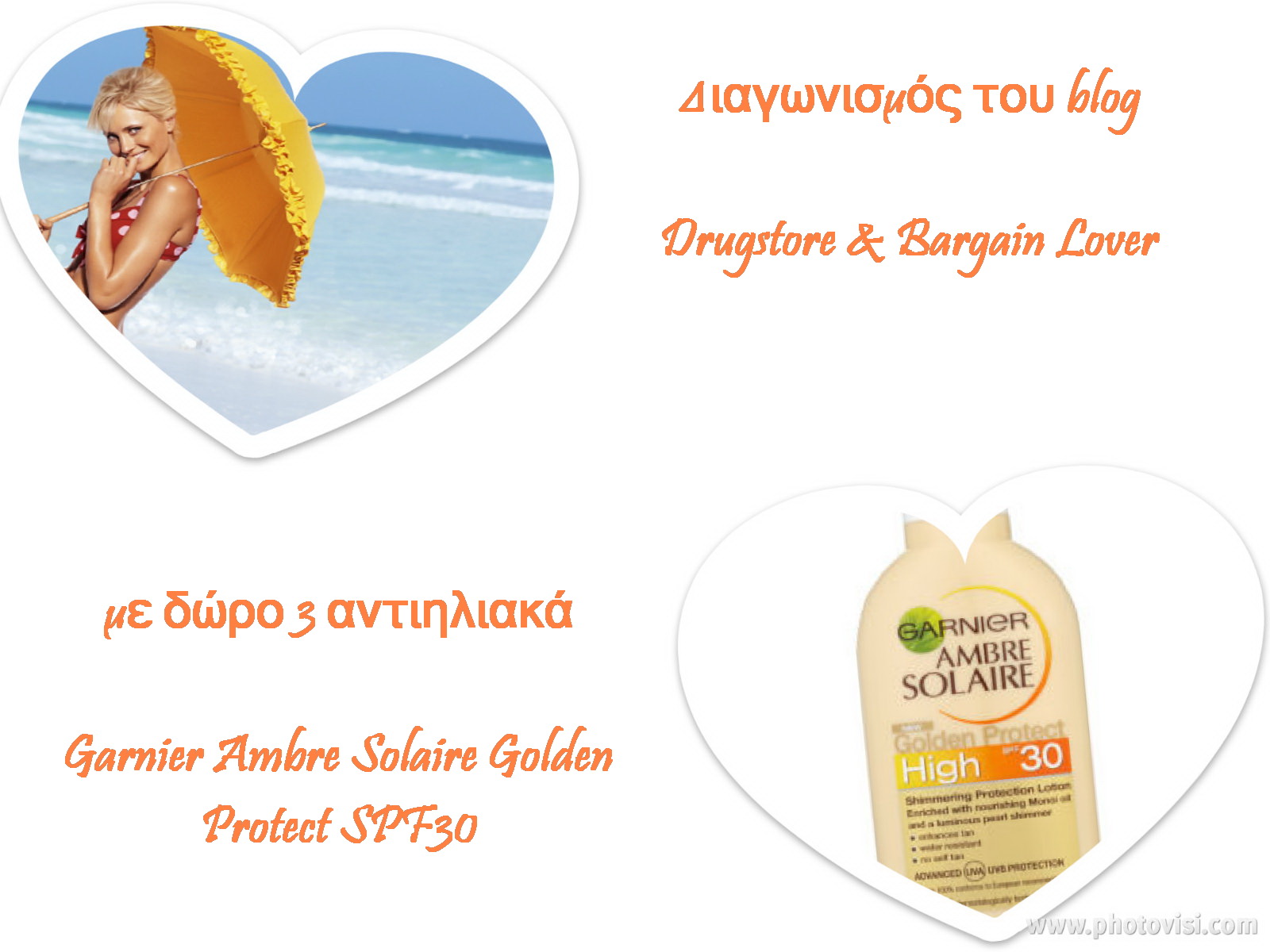 Το blog Drugstore & Bargain Lover διοργανώνει διαγωνισμό και σας δίνει τη δυνατότητα να κερδίσετε 3 αντηλιακά σώματος Ambre Solaire Golden Protect SPF30 της Garnier.