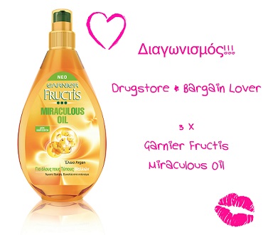 Το Drugstore & Bargain Loverδιοργανώνει διαγωνισμό και σας δίνει τη δυνατότητα να κερδίσετε 3 Garnier Fructis Miraculous Oil.