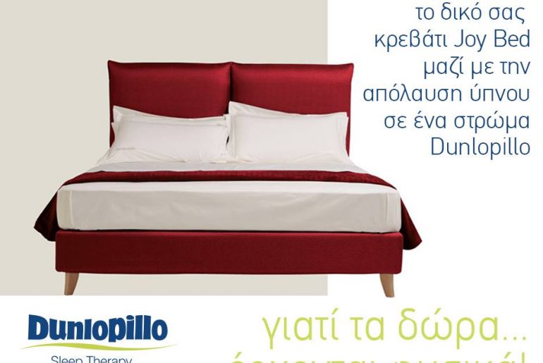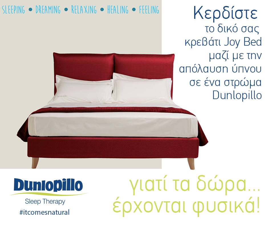 H Dunlopillo διοργανώνει διαγωνισμό και σας δίνει τη δυνατότητα να κερδίσετε ένα κρεβάτι Joy Bed μαζί με το στρώμα Dunlopillo από 100% φυσικό Talalay Latex!