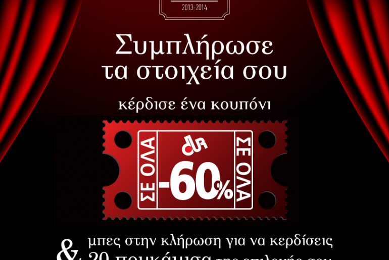 Επιπλέον όσοι παίρνουν μέρος κερδίσουν κουπόνι έκπτωσης 60%.