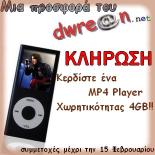 Το dwrean.net διοργανώνει διαγωνισμό και χαρίζει σε έναν τυχερό νικητή ένα mp4 player χωρητικότητας 4GB!