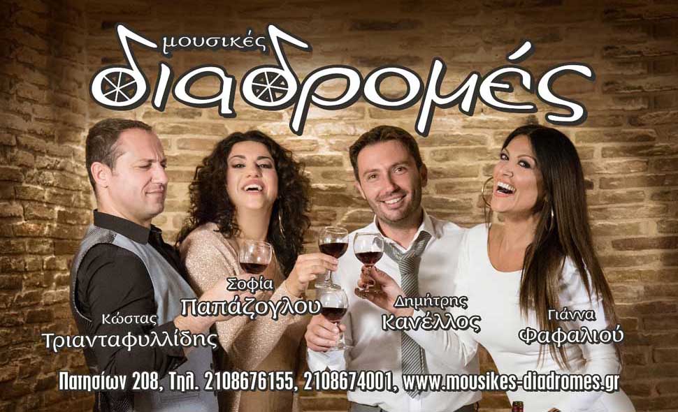 Το e-stage.gr διοργανώνει διαγωνισμό και σας δίνει τη δυνατότητα να κερδίσετε ένα τραπέζι για 4 άτομα την Παρασκευή 17 Νοεμβρίου το βράδυ στις Μουσικές Διαδρομές με τα πιο ωραία λαϊκά και ρεμπέτικα τραγούδια, ερμηνευμένα από τους Σοφία Παπάζογλου, Κώστα Τριανταφυλλίδη, Γιάννα Φαφαλιού και Δημήτρη Κανέλλο. με δωρεάν το πρώτο ποτήρι κρασί ή μπύρα!