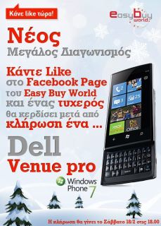 To Easy Buy World διοργανώνει διαγωνισμό και σας δίνει τη δυνατότητα να κερδίσετε ένα smartphone Dell Venue Pro με Windows Phone 7 και οθόνη αφής 4.1″ και πληκτρολόγιο!