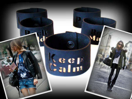 Μαύρο δερμάτινο βραχιόλι με λέξεις (Rock,Rock Mama,Rock daddy,Peace,Love,Keep calm,Fuck,Bitch)