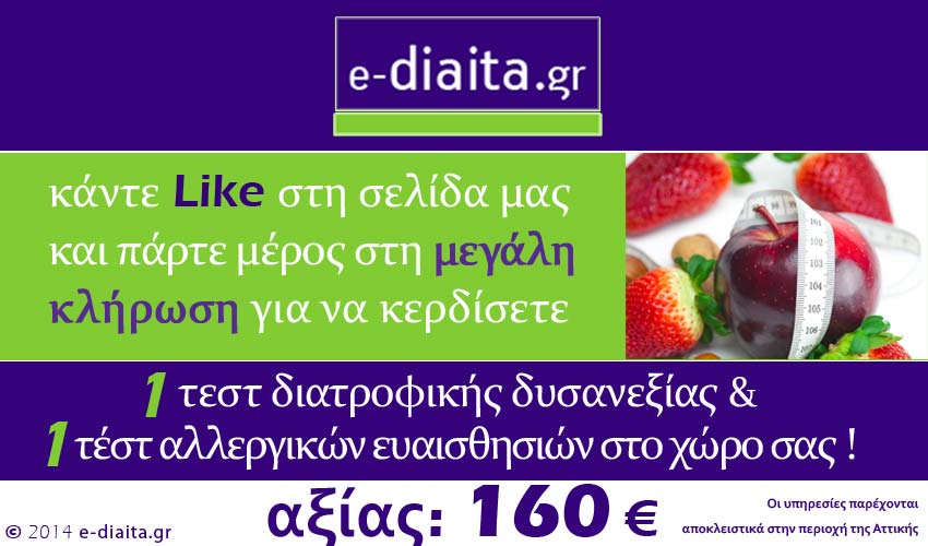 Διαγωνισμός e-diaita.gr με δώρο ένα τεστ διατροφικής δυσανεξίας και ένα τεστ αλλεργικών ευαισθησιών