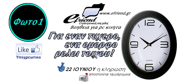 Το efriend.gr διοργανώνει διαγωνισμό και σας δίνει τη δυνατότητα να κερδίσετε ένα όμορφο ρολόι τοίχου!