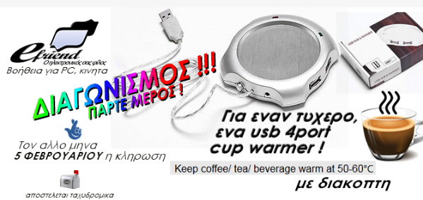 Το efriend.gr διοργανώνει διαγωνισμό και σας δίνει τη δυνατότητα να κερδίσετε ένα usb cup warmer!