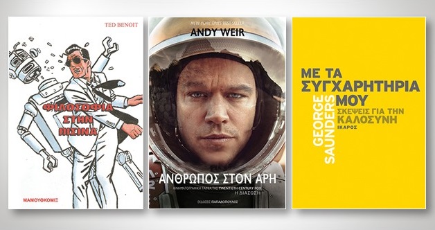 H Εφημερίδα των Συντακτών διοργανώνει διαγωνισμό και δίνει τη δυνατότητα σε 9 τυχερούς να κερδίσουν το φιλοσοφικό/αστυνομικό κόμικς «Φιλοσοφία στην πισίνα» (Τεντ Μπενουά, εκδ.: ΜΑΜΟΥΘ COMIX, 3 αντίτυπα), το λογοτεχνικό βιβλίο, «Άνθρωπος στον Άρη» (Άντυ Γουέιρ, εκδ.: ΠΑΠΑΔΟΠΟΥΛΟΣ, 3 αντίτυπα) και το δοκίμιο, «Με τα συγχαρητήριά μου – Σκέψεις για την καλοσύνη» (Τζωρτζ Σώντερς, εκδ.: ΙΚΑΡΟΣ, 3 αντίτυπα)