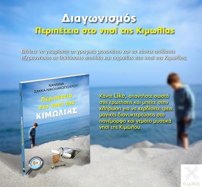 Θέλετε να γνωρίσετε τα γραφικά μονοπάτια και να κάνετε απίθανες εξερευνήσεις σε θαλάσσιες σπηλιές και παραλίες στο νησί της Κιμωλίας; Απαντήστε σωστά στις ερωτήσεις και μπείτε στην κλήρωση των Εκδόσεων Μίνωας για να κερδίσετε τρεις μαγικές διανυκτερεύσεις στο πανέμορφο και γεμάτο μυστικά νησί της Κιμώλου.