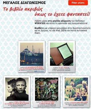 Η σελίδα ΕΚΔΟΣΕΙΣ ΨΥΧΟΓΙΟΣ διοργανώνει διαγωνισμό και σας δίνει τη δυνατότητα να κερδίσετε μια υπέροχη κρουαζιέρα στην Κωνσταντινούπολη και τη Σμύρνη, το νέο iPad, βιβλία και πολλά συλλεκτικά δώρα.