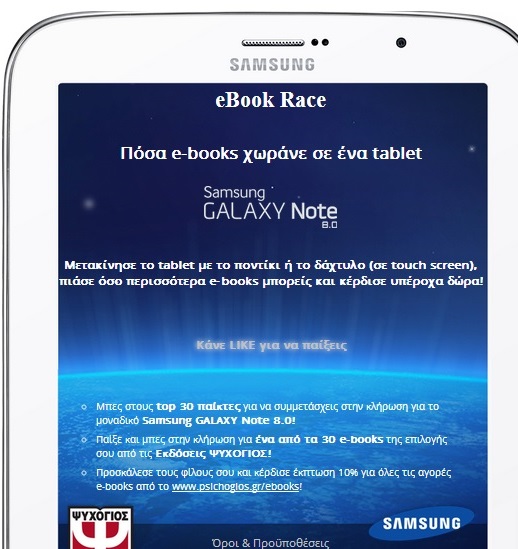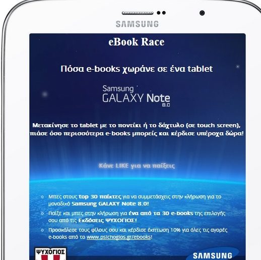 Οι Εκδόσεις ΨΥΧΟΓΙΟΣ διοργανώνουν διαγωνισμό και σας δίνουν τη δυνατότητα να κερδίσετε ένα Samsung Galaxy Note 8.0 και 30 e-books της επιλογής σας.