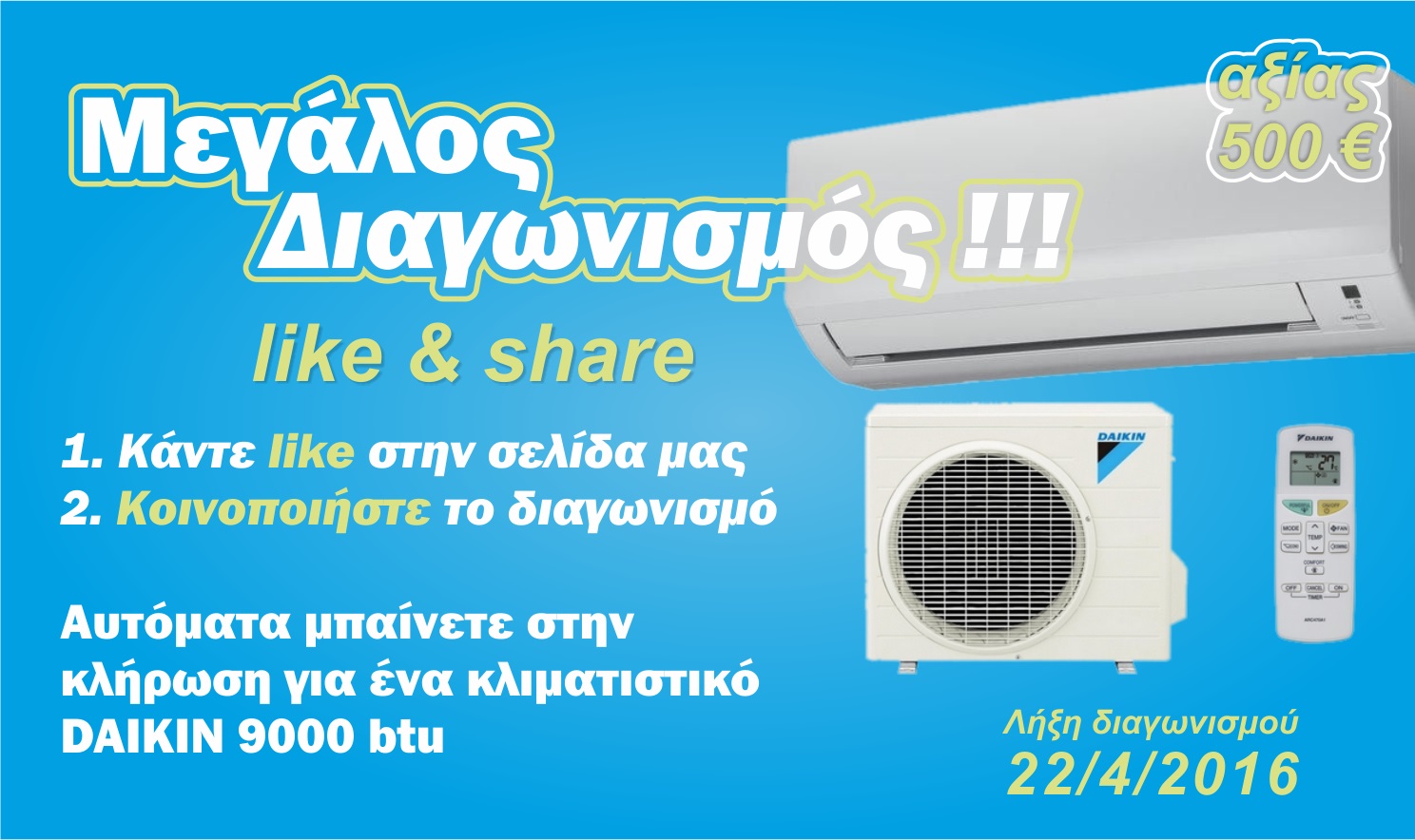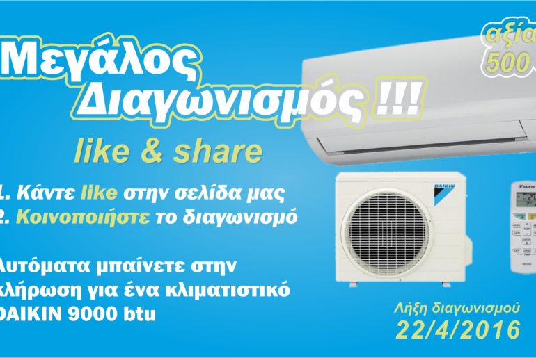 H Electrocool διοργανώνει διαγωνισμό και σας δίνει τη δυνατότητα να κερδίσετε ένα κλιματιστικό Daikin 9000BTU!