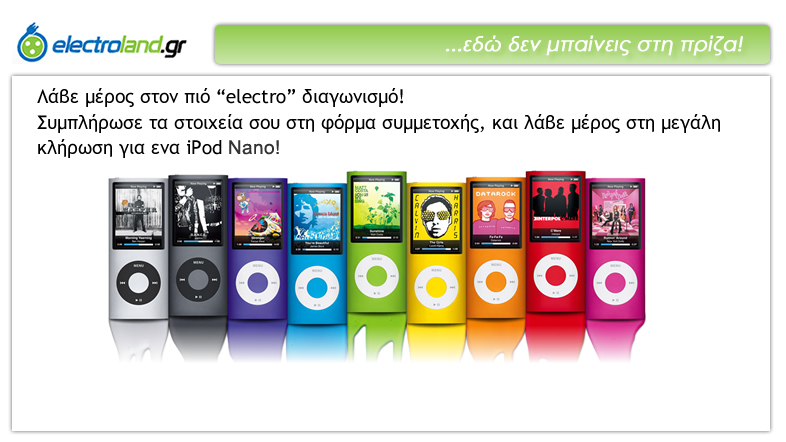 Το Electroland.gr διοργανώνει διαγωνισμό και σας δίνει τη δυνατότητα να κερδίσετε ένα iPod Nano!