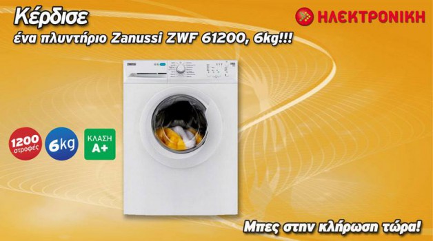 Η ΗΛΕΚΤΡΟΝΙΚΗ διοργανώνει διαγωνισμό και σας δίνει τη δυνατότητα να κερδίσετε ένα πλυντήριο ρούχων Zanussi ZWF 61200 W.