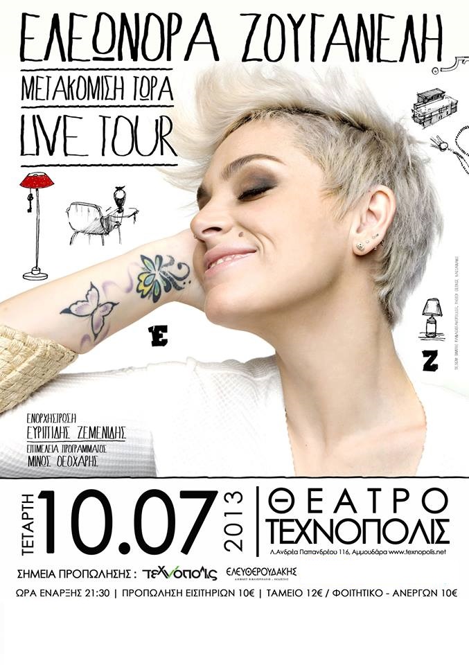 Το Βιβλιοπωλείο Ελευθερουδάκης Ηρακλείου διοργανώνει διαγωνισμό και σας δίνει τη δυνατότητα να κερδίσετε 15 εισιτήρια για τη συναυλία της Ελεωνόρας Ζουγανέλη στο Ηράκλειο. Η Ελεωνόρα Ζουγανέλη πακετάρει τραγούδια και με τη βοήθεια των φίλων της μουσικών ξεκινάει. ”Μετακόμιση τώρα”, την Τετάρτη 10 Ιουλίου στο Θέατρο Τεχνόπολις στο Ηράκλειο!