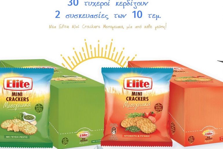 H Elite διοργανώνει διαγωνισμό και δίνει τη δυνατότητα σε 30 τυχερούς να κερδίσουν από 10 συσκευασίες Νέα Elite Mini Crackers Μεσογειακά με ντομάτα & ρίγανη (50 γρ.) και 10 με γεύση pesto (50 γρ.)!