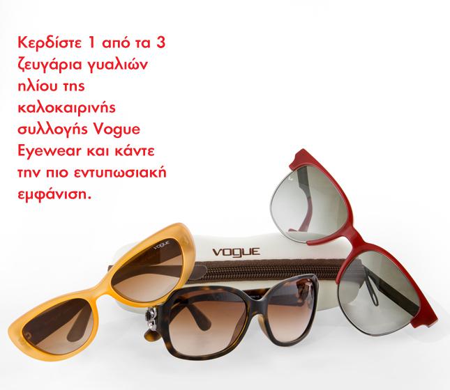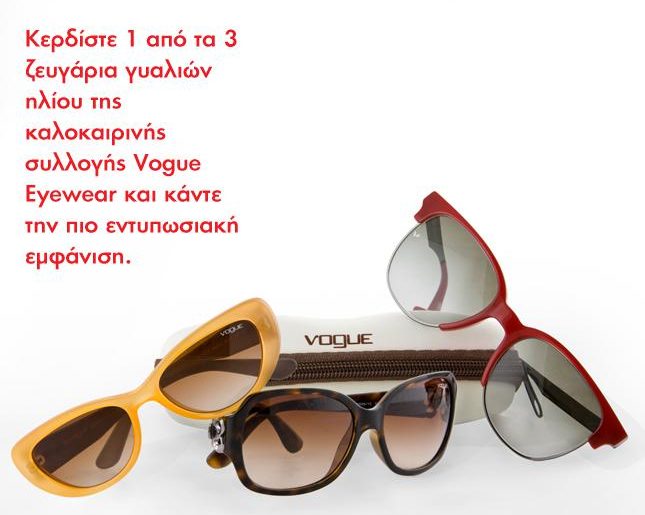 Το elle.gr διοργανώνει διαγωνισμό και σας δίνει τη δυνατότητα να κερδίσετε 3 ζευγάρια γυαλιά ηλίου της καλοκαιρινής συλλογής VOGUE EYEWEAR.