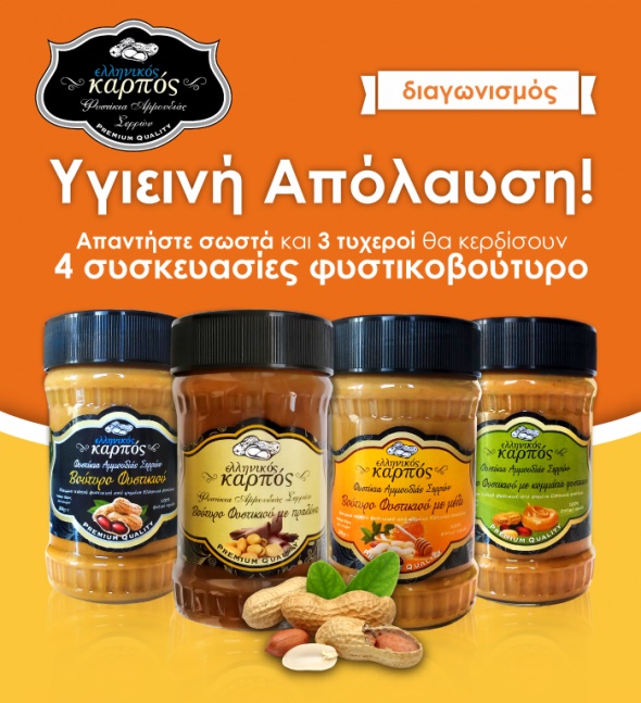 Διαγωνισμός Ελληνικός Καρπός με δώρο 12 συσκευασίες φυστικοβούτυρο