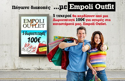 Το Empoli Outlet διοργανώνει διαγωνισμό και δίνει τη δυνατότητα σε 5 τυχερούς να κερδίσουν από μια Δωροεπιταγή 100€ για αγορές από τα καταστήματά Empoli Outlet.