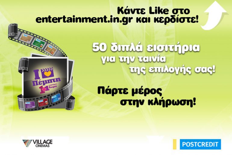 Το in.gr σε συνεργασία με την POSTCREDIT, αφουγκραζόμενο την ανάγκη σας για διασκέδαση και τις δυσκολίες που όλοι αντιμετωπίζουμε καθημερινά, προσφέρει σε 50 τυχερούς, από ένα διπλό εισιτήριο για να παρακολουθήσουν τις αγαπημένες τους ταινίες στα Village Cinemas, όποτε οι ίδιοι επιθυμούν, έως τις 31/12/2013.