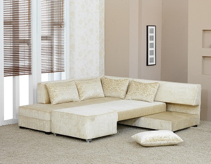 Γωνιακός καναπές με διάσταση 3,00*2,15*0,80 με πολύ καλή ποιότητα υφάσματος σε χρώμα κρεμ το οποίο συνδυάζεται εύκολα με κάθε σας χρωματική επιλογή που πιθανόν να υπάρχει ήδη σε ένα χώρο, με μια πολύ απλή κίνηση μετατρέπεται σε διπλό κρεβάτι κατάλληλο για να κοιμηθούν άνετα δύο ενήλικα άτομα και με τον ίδιο ακριβώς τρόπο γίνεται ξανά ένας εντυπωσιακός γωνιακός καναπές.