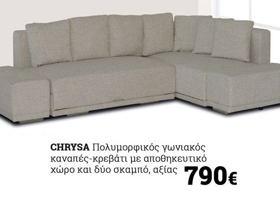 Τα Έπιπλα Μαρμαρίδης διοργανώνουν διαγωνισμό και σας δίνουν τη δυνατότητα να κερδίσετε ένα γωνιακό καναπέ Chrysa, αξίας 790€, με μεγάλο αποθηκευτικό χώρο και δυνατότητα μετατροπής σε διπλό κρεβάτι!