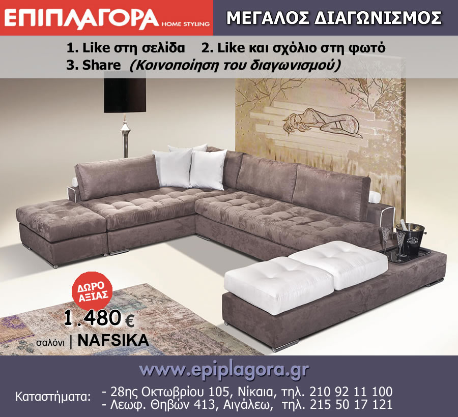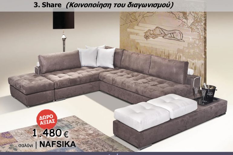H Επιπλαγορά Home Styling διοργανώνει διαγωνισμό και σας δίνει τη δυνατότητα να κερδίσετε ένα σαλόνι Nafsika, ελληνικής κατασκευής από ξύλο οξιάς με αδιάβροχο ύφασμα, αξίας 1.480€!