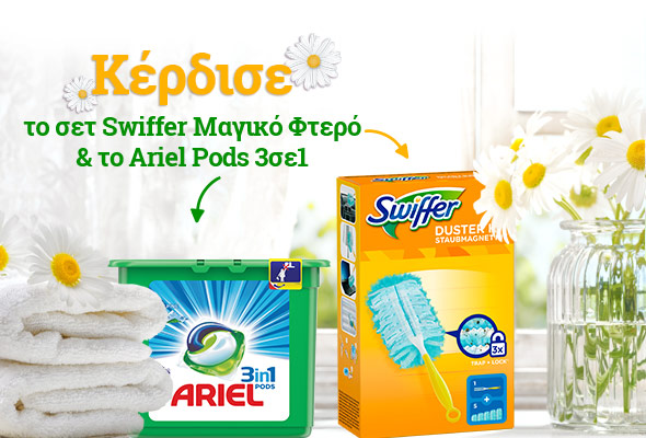 Το epithimies.gr διοργανώνει διαγωνισμό και δίνει τη δυνατότητα σε 20 τυχερoύς να κερδίσουν το swiffer μαγικό φτερό και ariel pods 3σε1!