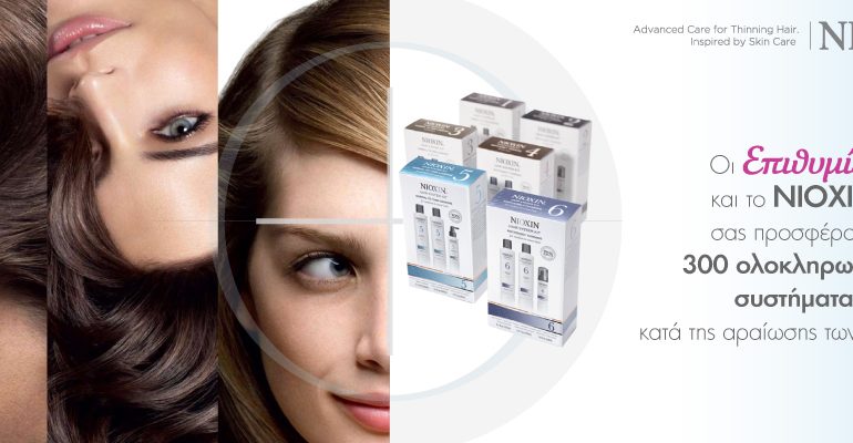 Η σελίδα Επιθυμίες διοργανώνει διαγωνισμό και σας δίνει τη δυνατότητα να κερδίσετε 300 ολοκληρωμένα συστήματα Nioxin κατά της αραίωσης των μαλλιών.