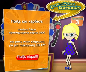 Η σελίδα Επιθυμίες διοργανώνει το διαγωνισμό «O Τροχός των Επιθυμιών» με μεγάλο δώρο μια τηλεόραση 3D, 47”. Επιπλέον κατά την διάρκεια του διαγωνισμού θα δοθούν δύο χιλιάδες τριακόσια δεκατέσσερα δώρα (2.314).