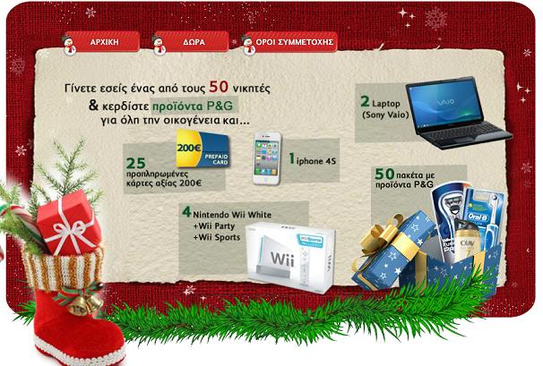 Η σελίδα epithimies.gr διοργανώνει διαγωνισμό και σας δίνει τη δυνατότητα να κερδίσετε 1 iphone 4s, 2 laptop Vaio, 4 Nintendo Wii, 25 Prepaid cards των 200€ και 50 Χριστουγεννιάτικα πακέτα προϊόντων P&G.