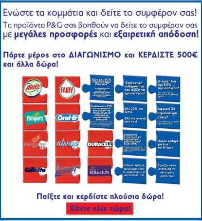 To epithimies.gr επιστρέφει με έναν μεγάλο διαγωνισμό και δίνει τη δυνατότητα σε δέκα τυχερούς να κερδίσουν προπληρωμένες κάρτες φορτωμένες με 500€ η καθεμία αλλά και σε 500 ακόμη τυχερούς χαρίζει πακέτα με αγαπημένα προϊόντα P&G!