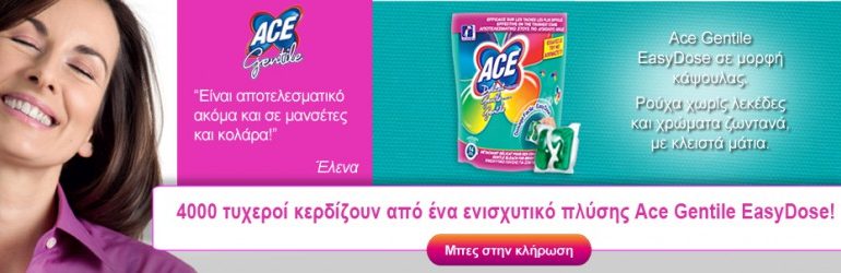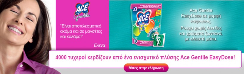 Το epithimies.gr διοργανώνει διαγωνισμό και δίνει τη δυνατότητα σε 4000 τυχερούς να κερδίσουν μία κανονική συσκευασία προϊόντος Ace Gentile EasyDose ενισχυτικό πλυσίματος της Procter & Gamble.