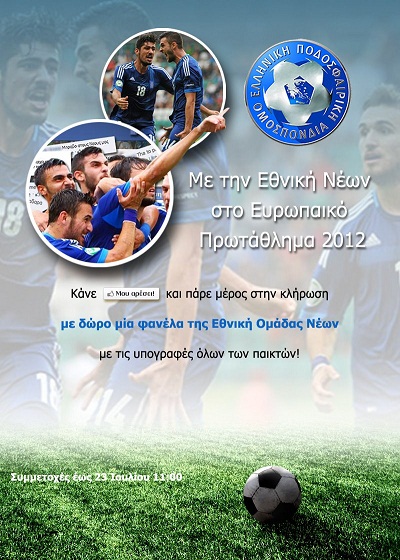 Η σελίδα της ΕΠΟ στο Facebook διοργανώνει διαγωνισμό και σας δίνει τη δυνατότητα να κερδίσετε μία συλλεκτική φανέλα με τις υπογραφές όλων των παικτών της Εθνικής Νέων.