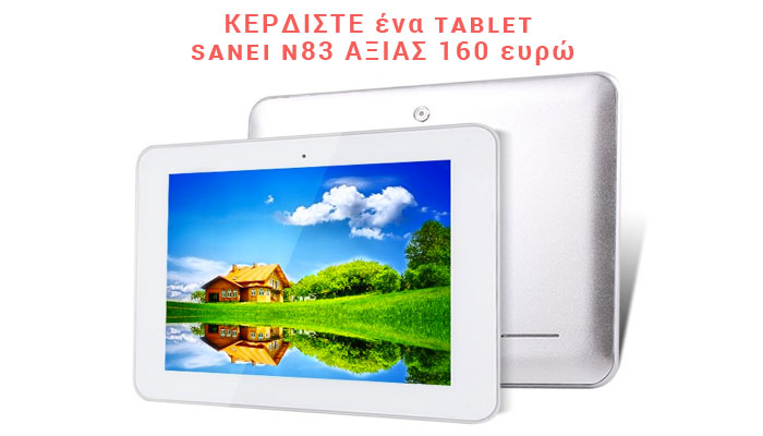Το ereportaz.gr διοργανώνει διαγωνισμό και σας δίνει τη δυνατότητα να κερδίσετε ένα tablet Sanei N83, εξοπλισμένο με τετραπύρηνο επεξεργαστή και οθόνη 8″ IPS αξίας 160 ευρώ.