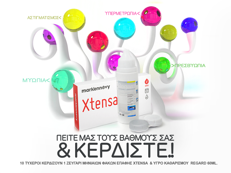 Το erghani.gr διοργανώνει διαγωνισμό και δίνει τη δυνατότητα σε 10 τυχερούς να κερδίσουν 1 ζευγάρι μηνιαίων φακών επαφής Xtensa της mark’ennovy & 1 υγρό καθαρισμού Regard 60ml!